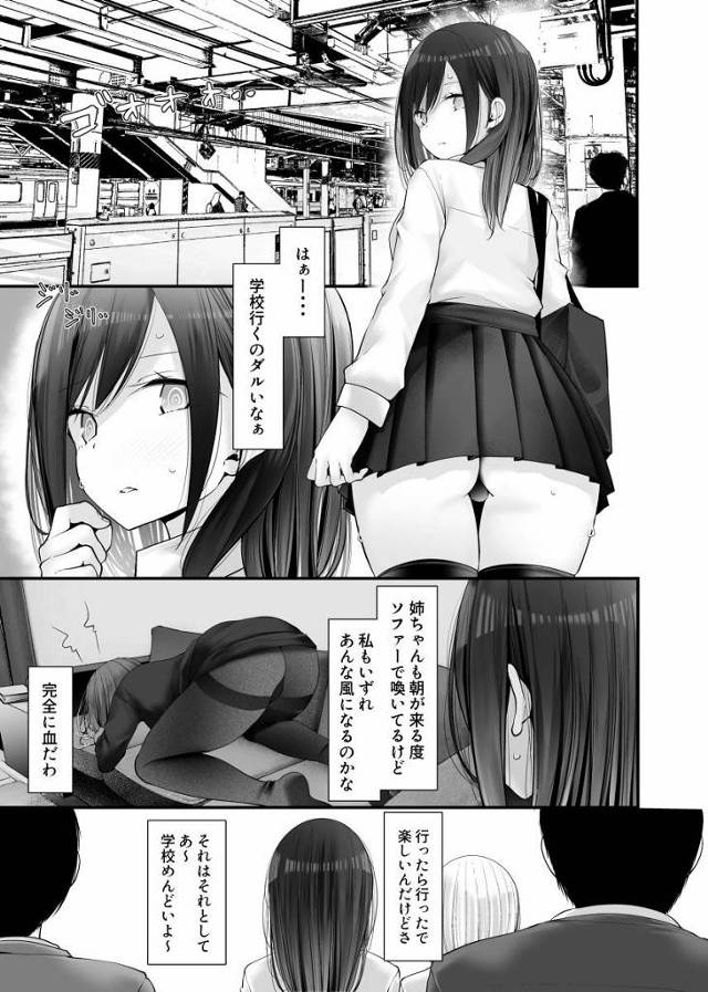 【エロ漫画】満員電車で妹の様なポニーテールのJKにチンコを押付けたら逆にメールでを誘われて生ハメ痴漢セックスで中出し絶頂させ処女喪失!